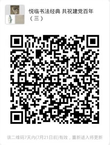 1. 拟参加学生可加入“悦临书法经典,共祝建党百年”活动打卡微信交流群,在群内参与管理员发布的打卡任务(注意:已参加寒假打卡活动并入群的同学不必再次入微信群)。