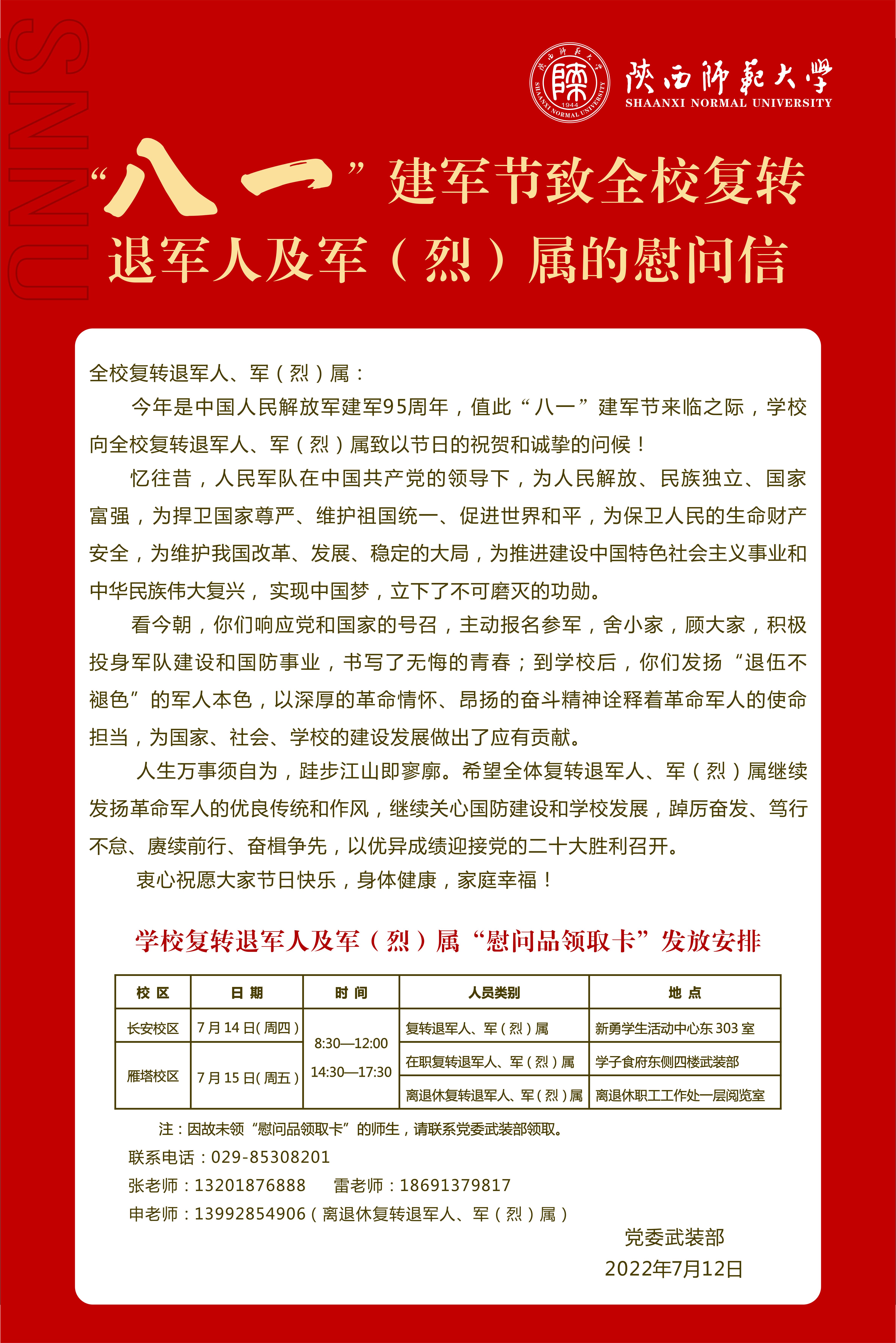 “八一”建军节致全校复转退军人及军(烈)属的慰问信