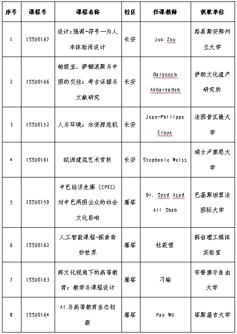 3.课程信息:见下表。任课教师和课程简介请见附件1,所列课程均认定为通识教育选修课学分(1学分/18学时)。