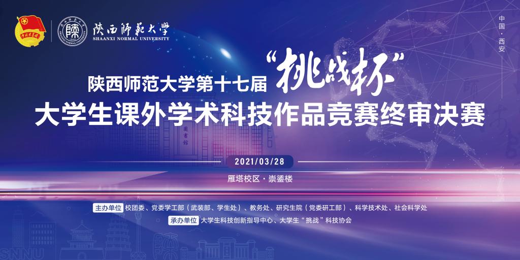 为持续提升威尼斯官网“挑战杯”大学生课外学术科技作品竞赛参赛作品的水平和层次,有效促进团队间的交流与学习,同时遴选优秀作品参加省级及国家级竞赛,现定于2021年3月28日(周日)在雁塔校区崇鋈楼举办第十七届“挑战杯”大学生课外学术科技作品竞赛终审决赛。本次决赛采取公开答辩形式,欢迎广大师生前来观摩交流。