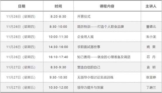 “企业精英求职精准指导训练营”旨在帮助毕业生掌握未来进入企业工作所需的知识与技能,挖掘和激励潜在的能力和素质,提高职场竞争力,了解和预判企业发展规律,以应对随着企业外部环境变化所带来的工作新需求。