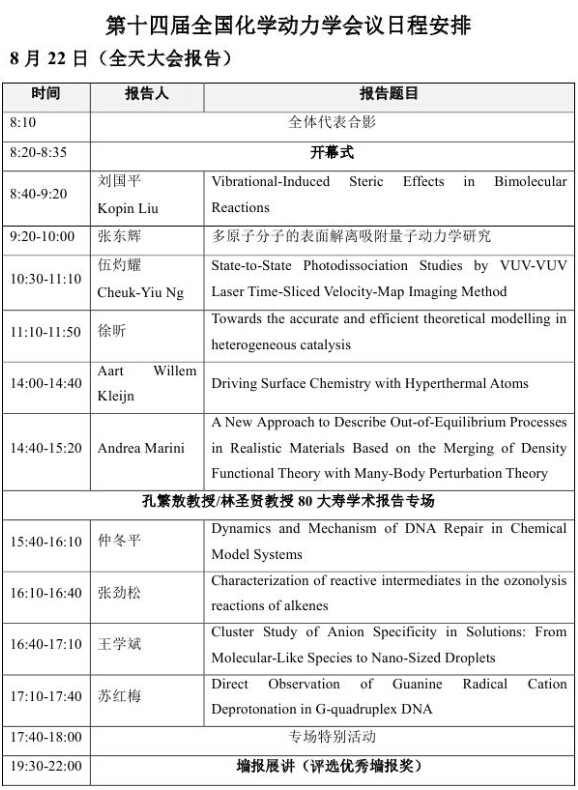 活动类别:第十四届全国化学动力学会议