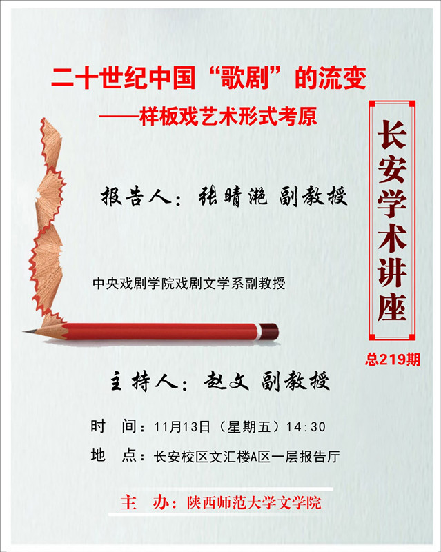 讲座题目:二十世纪中国“歌剧”的流变——样板戏艺术形式考原