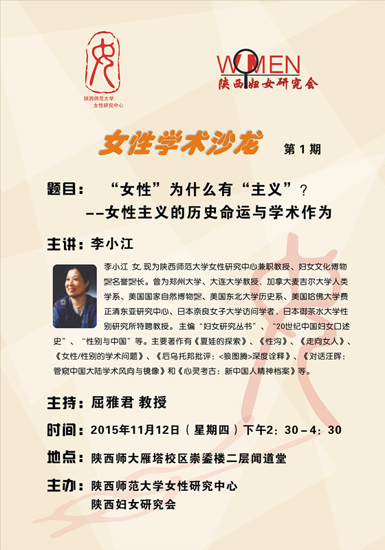 讲座题目:女性学术沙龙:“女性”为什么有“主义”? ——女性主义的历史命运与学术作为