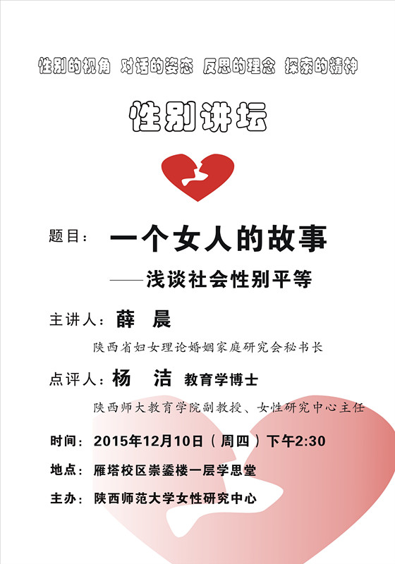 讲座题目:性别讲坛:一个女人的故事---浅谈社会性别平等