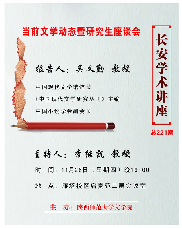 讲座题目:当前文学动态暨研究生座谈会