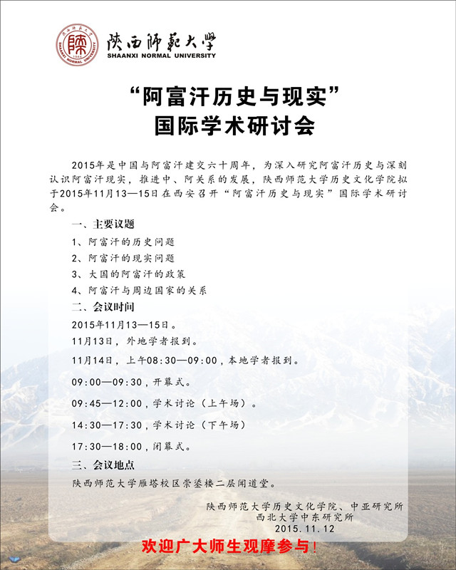 活动类别:“阿富汗历史与现实”国际学术研讨会