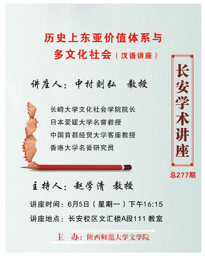 讲座题目:长安学术讲座 第 277 期:历史上东亚价值体系与多文化社会(汉语讲座)