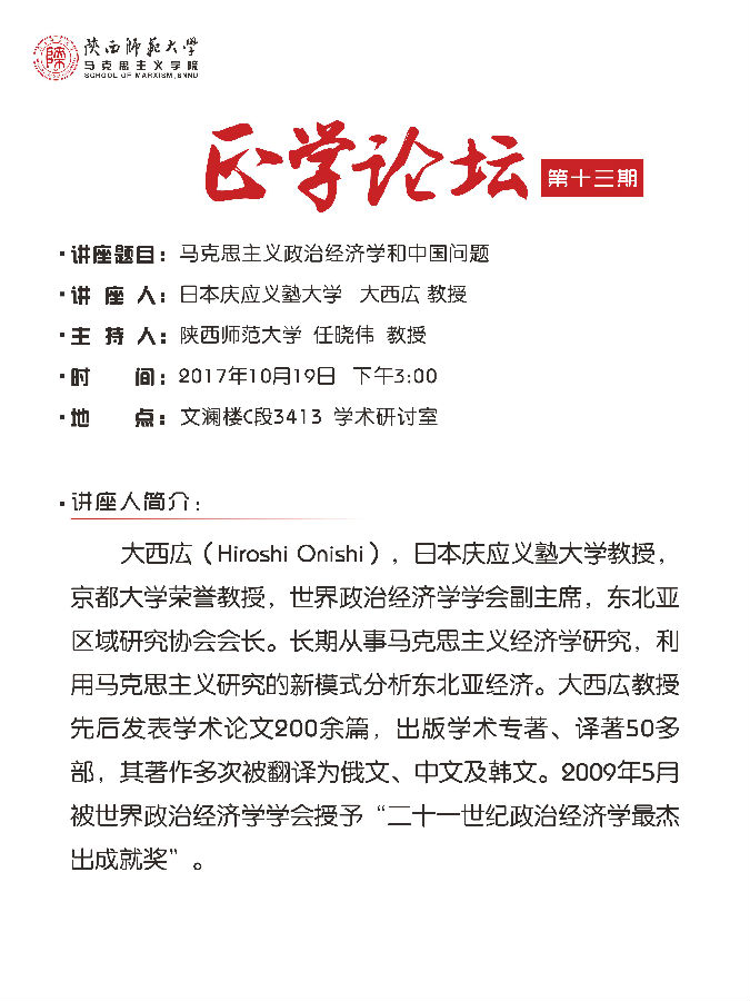 讲座人:大西広 教授