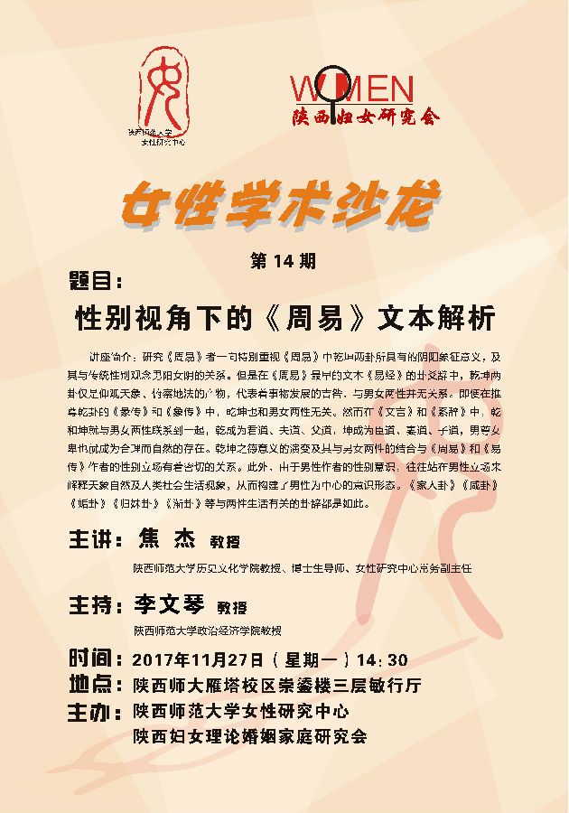 讲座题目:性别视角下的《周易》文本解析