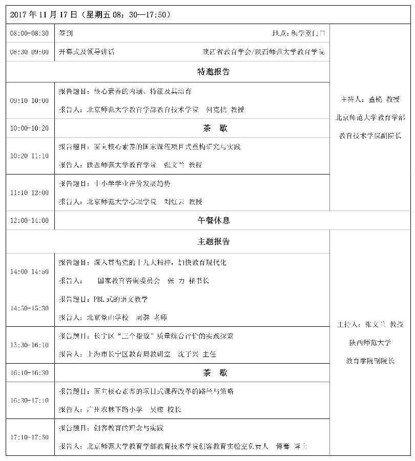 讲座题目:陕西省中小学生核心素养发展与学校课程改革专题研讨会