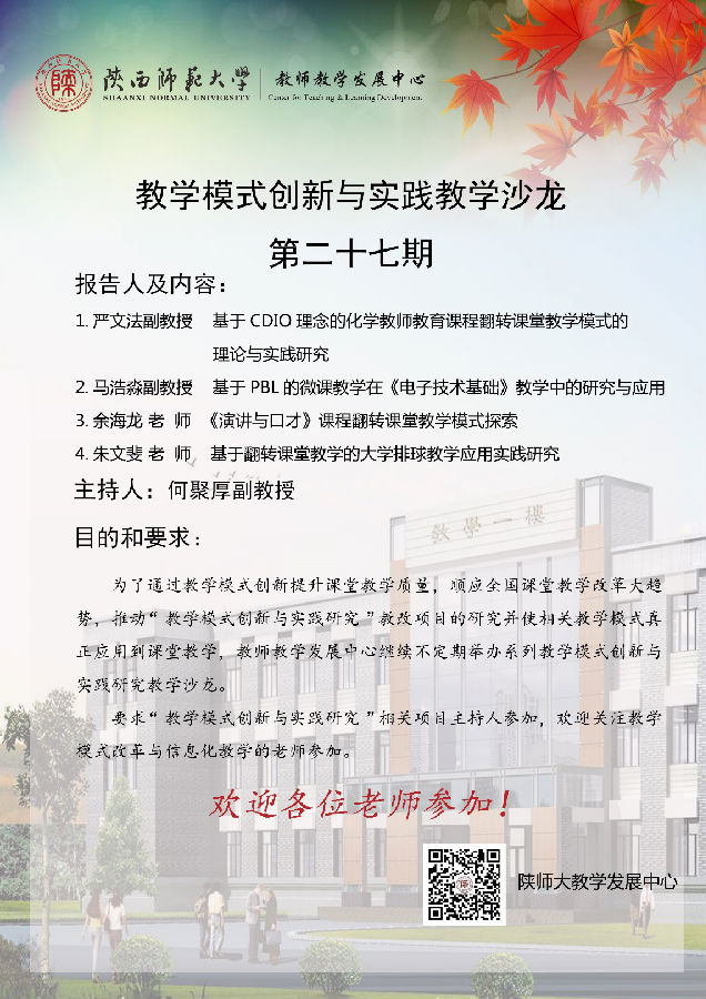 讲座题目:教学模式创新与实践教学沙龙第27期预告 翻转课堂及PBL教学模式创新与实践