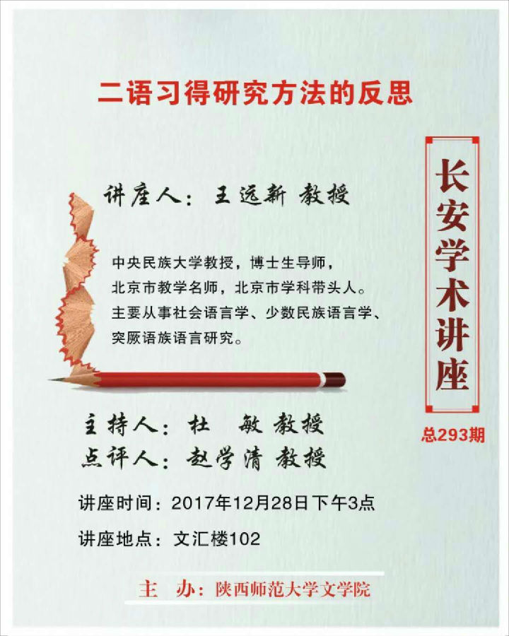 讲座人:王远新 教授(中央民族大学教授,博士生导师,北京市教学名师,北京市学科带头人。主要从事社会语言学、少数民族语言学、突厥语族语言研究。)