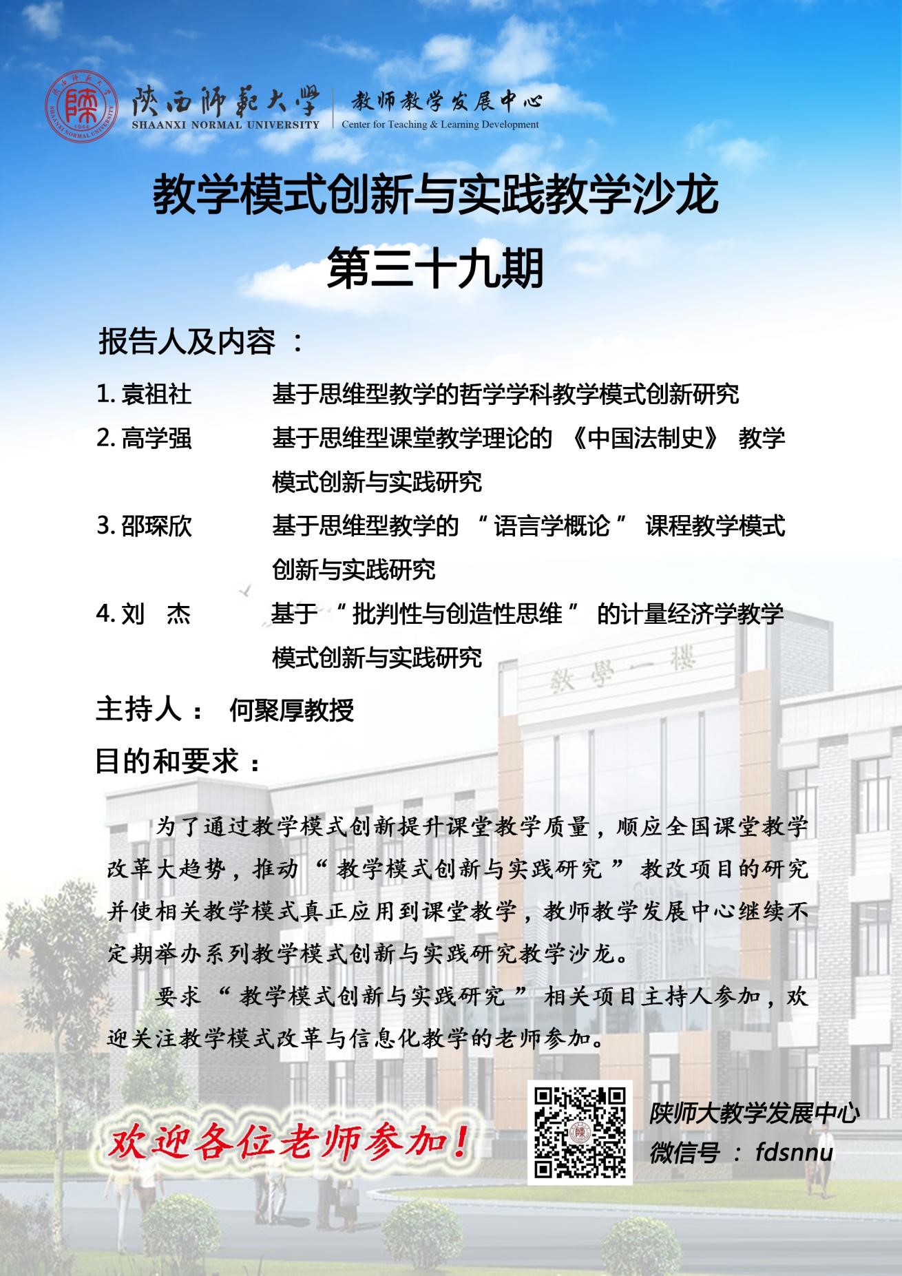 教学模式创新与实践教学沙龙第39期预告-基于思维型教学的课程教学模式创新研究