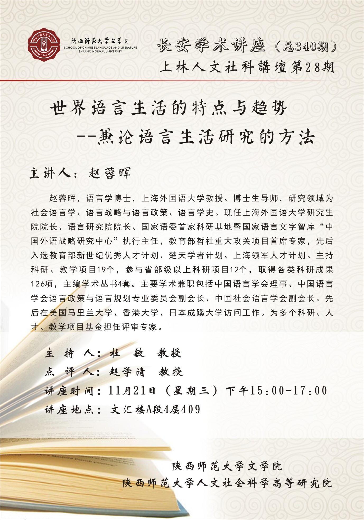 长安学术讲座:世界语言生活的特点与趋势——兼论语言生活的研究方法