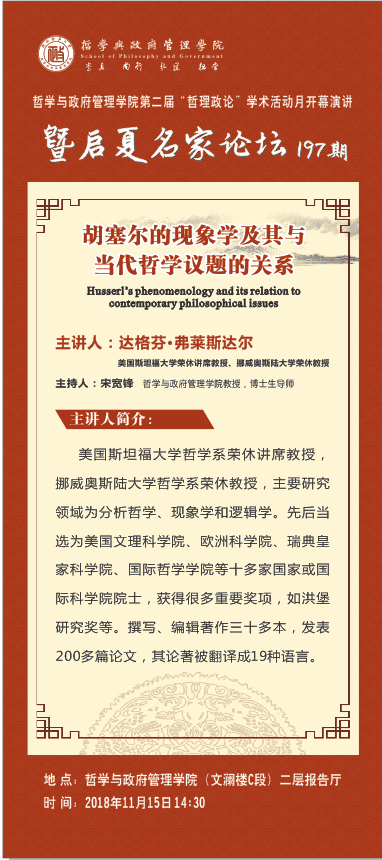 启夏名家论坛197期:胡塞尔的现象学及其与当代哲学议题的关系