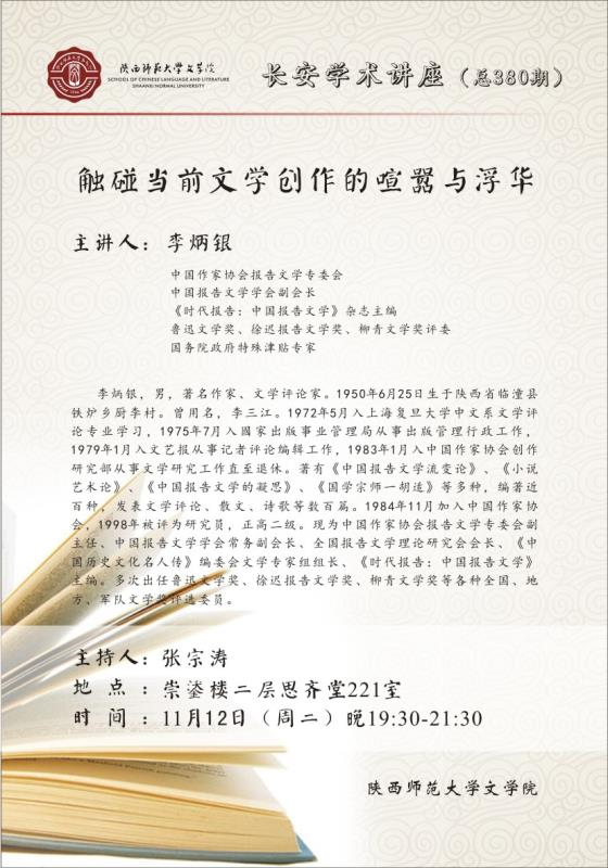 长安学术讲座(总380期):触碰当前文学创作的喧嚣与浮华