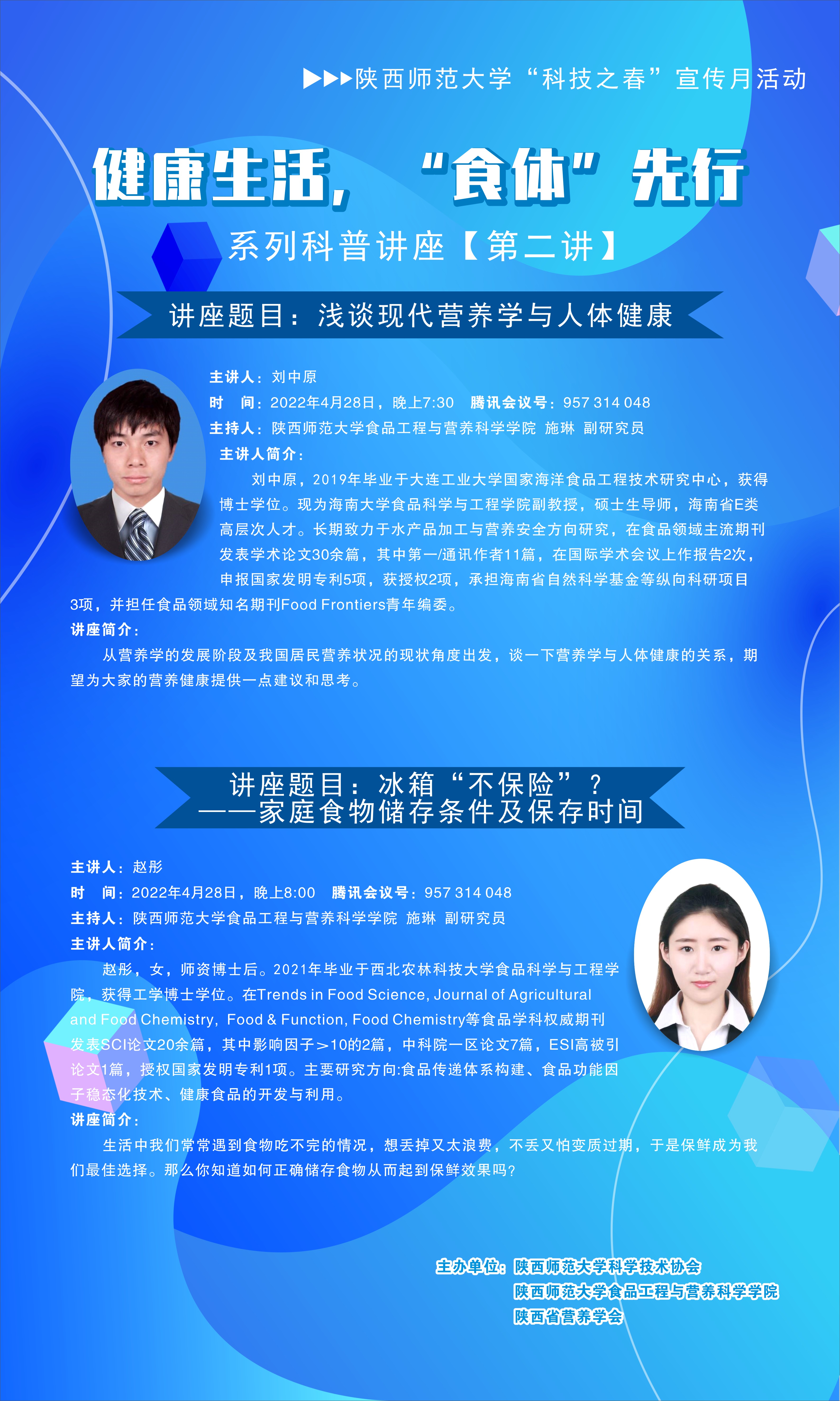 威尼斯432888cam“科技之春”宣传月活动健康生活,“食体”先行系列科普讲座