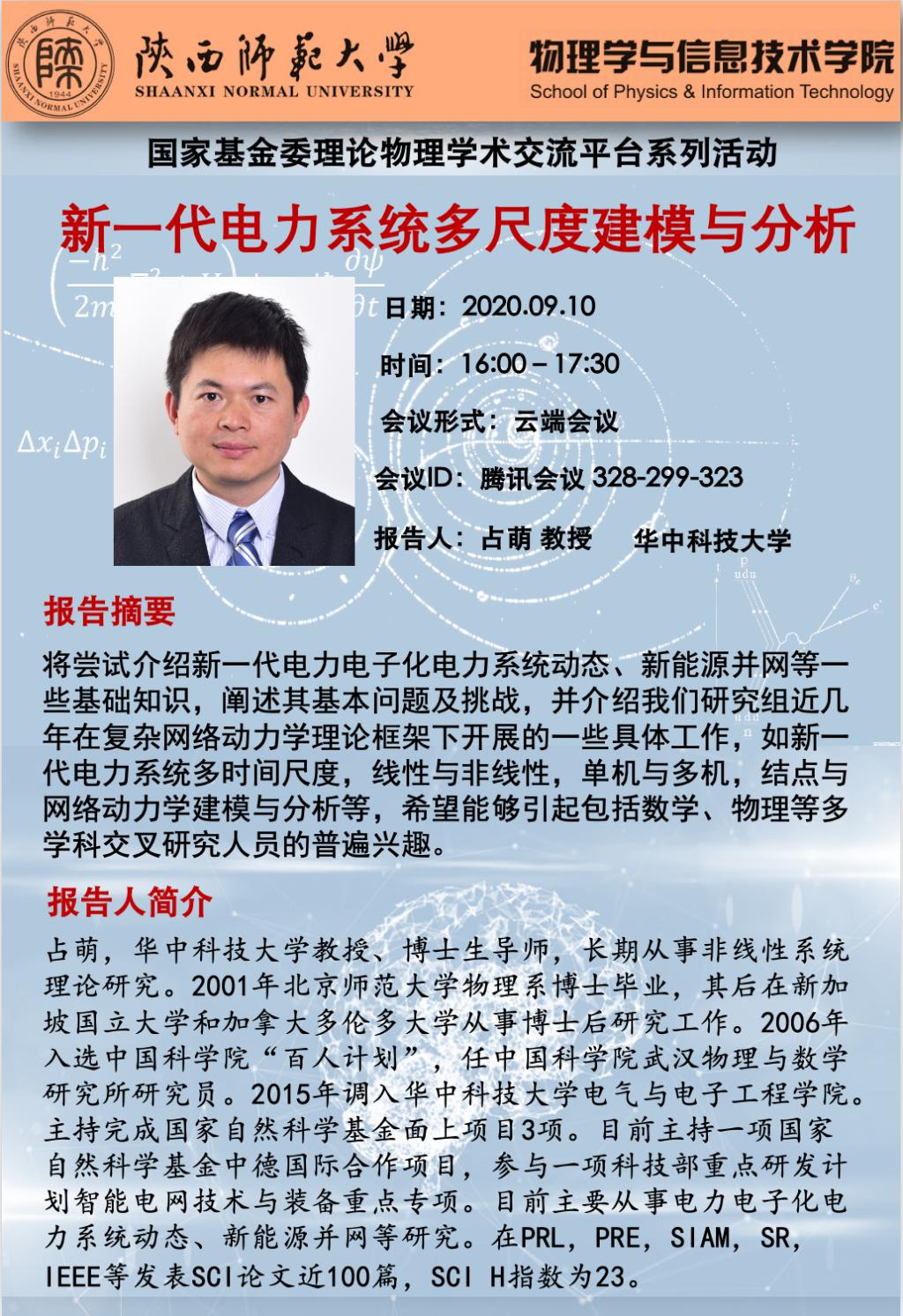 国家基金委理论物理学术交流平台系列活动:新一代电力系统多尺度建模与分析