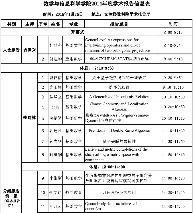 活动类别:数学与信息科学学院2014年度学术报告